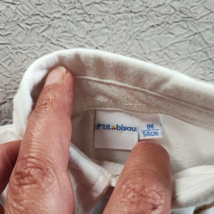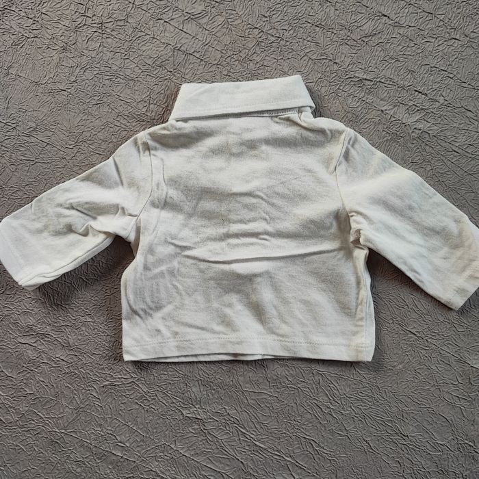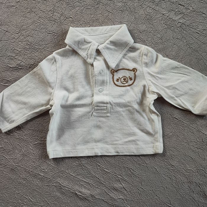 Joli polo fin 1 mois blanc avec nounours sur le côté P'tit bisou 100% coton #ady68800garçon1mois