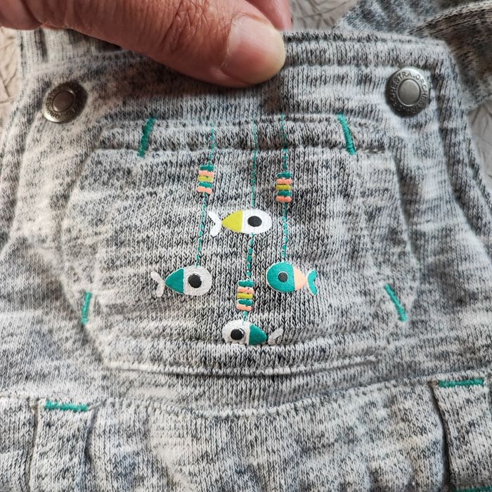 Jolie salopette gris chiné avec petit dessin de couleur Ouverture à l'entrejambe Taille 1 mois Orchestra bébé #ady68800garçon1mois