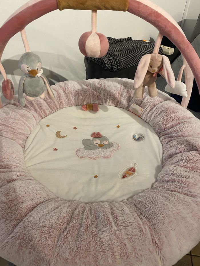 Tapis d’éveil très bon état acheté neuf en novembre 2022. Très doux et confortable. Rose avec pingouin et lapin.