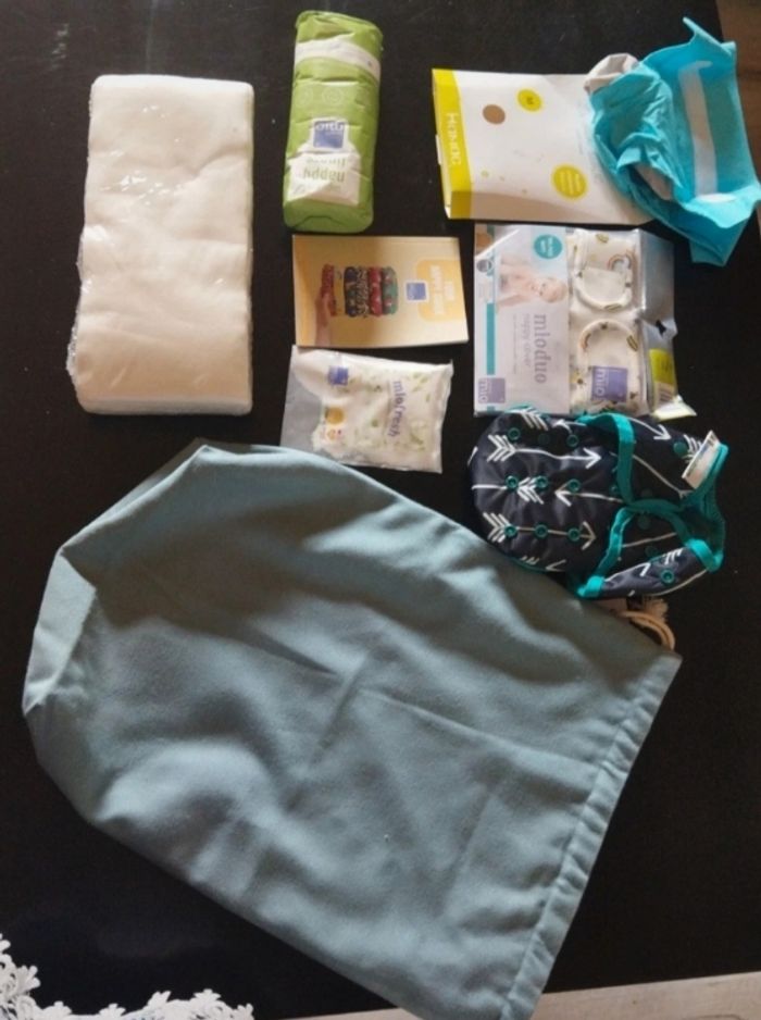 Comprenant ; Une culotte de protection TE2 taille unique best bottom diaper Trois inserts adaptés à la culotte TE2 Une culotte de protection TE2 multi taille T1 Bambino Mio De booster double en bambou et microfibre bamboolik Un lange pré plié taille unique Bambino Mio Une culotte tE2 à nacelle TM hamac Un insert adapté à la culotte à nacelle TE2 hamac Un insert polyvalent très plié en bambou TM petit dessous 3 boosters en bambou petit dessous Deux voiles de protection en microfibre polaire petit dessous Un rouleau de voile de protection en cellulose petit dessous Le kit est placé dans un sac adéquate Ce sac permet lors de vos déplacements de mettre les couches usagés et de pouvoir les laver par la suite L'ensemble de ce kit est totalement neuf il est au prix de 90 euros . En attentes de vos propositions. #banbinomio #bestbottomdiaper #bamboolik #tm p'tits dessous