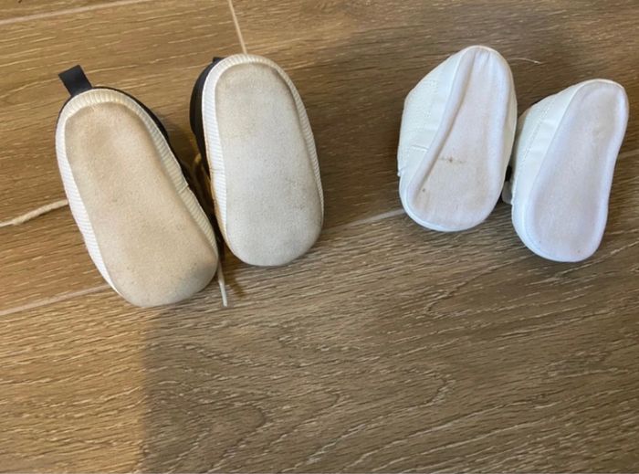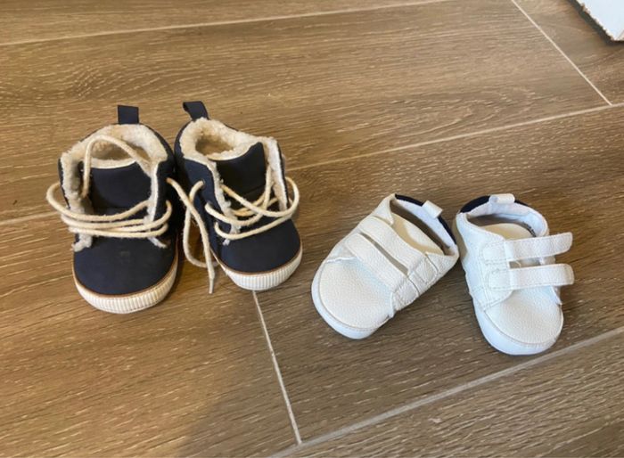 Lot chaussures bébé 2 paires de chaussure bébés basket blanche légère basket fourrée taille 6/9 mois