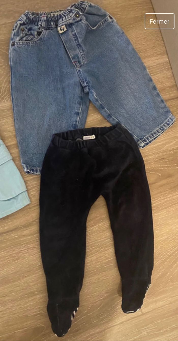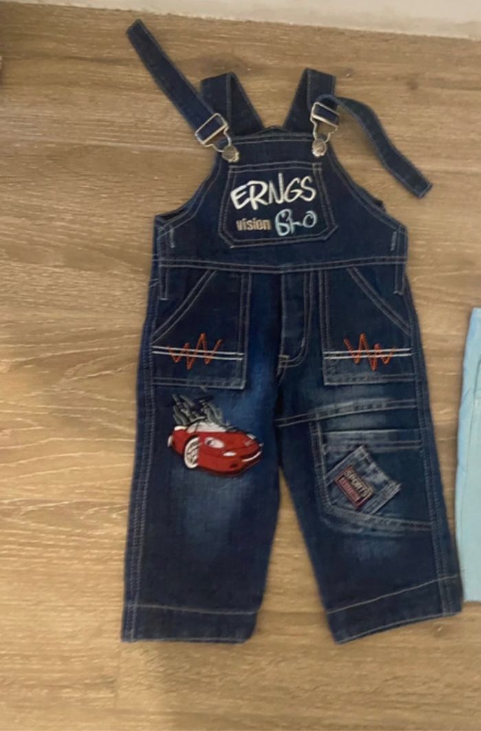 Lot salopettes et pantalons Pantalons 1 jean 1 velours avec pied Salopettes 1 longue 1 courte 12 mois