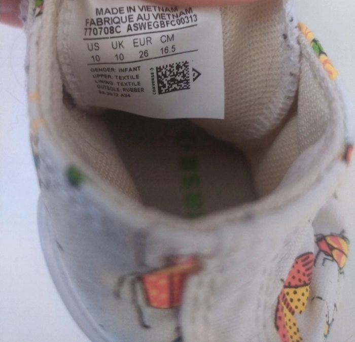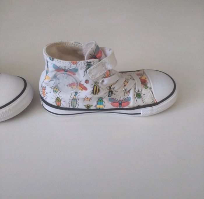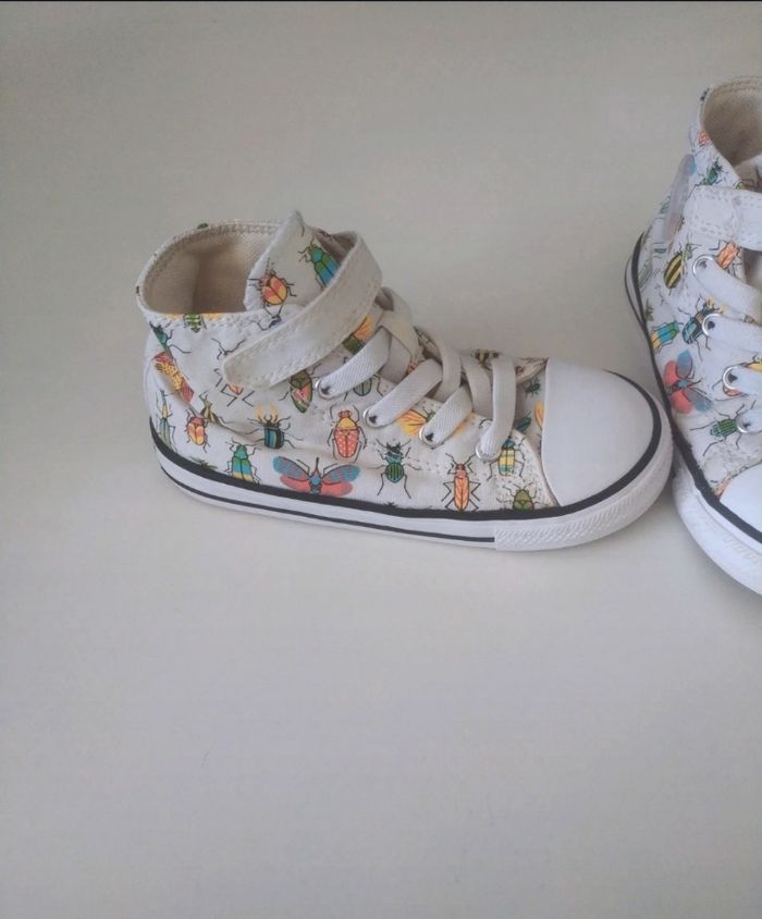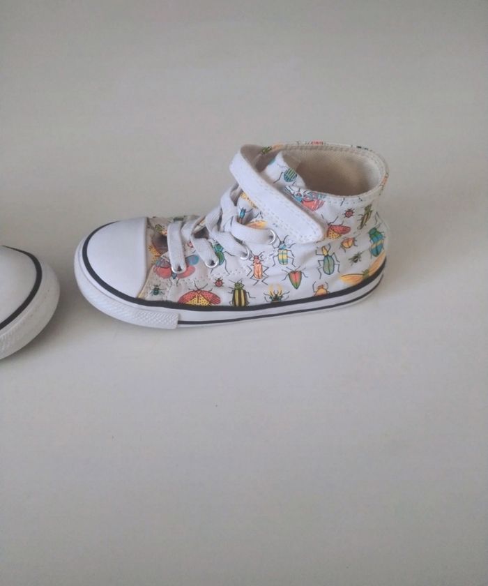 Converses officielles enfants Pointure 26 Blanche avec motifs insectes Scratch avec lacets élastiques Très bon état