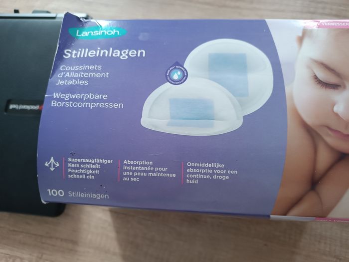 Vends boite de coussinnets d'allaitement. Entamée, il doit en manquer une trentaine. En excellent état.