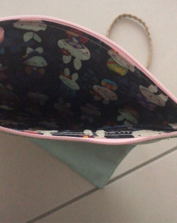 Sac enfants en simili cuir bleu turquoise motifs lapin uuFermeture à tirette dimension 22,5 x26 cm