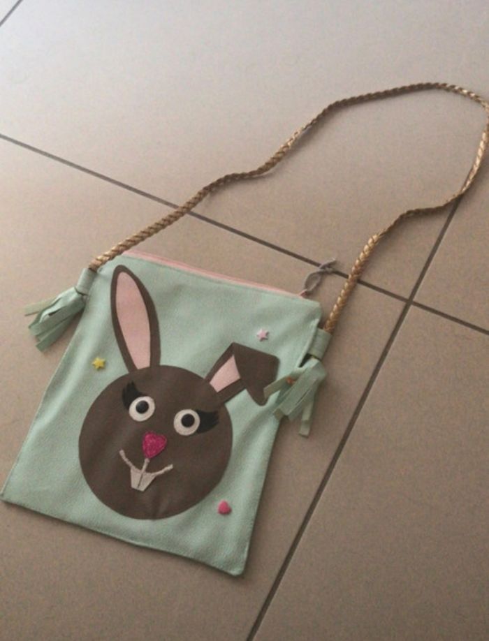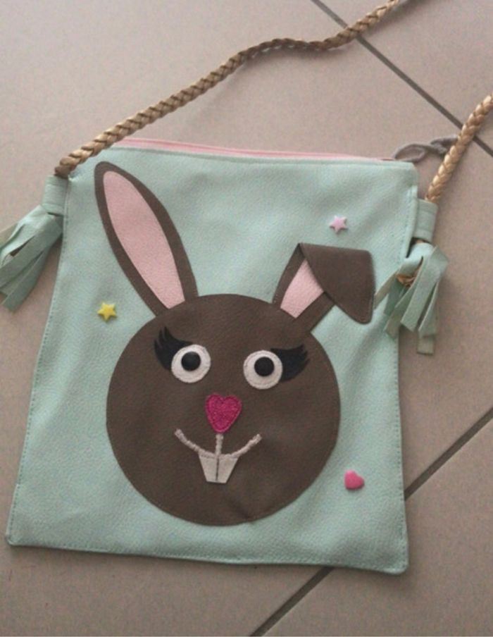 Sac enfants en simili cuir bleu turquoise motifs lapin - photo numéro 1