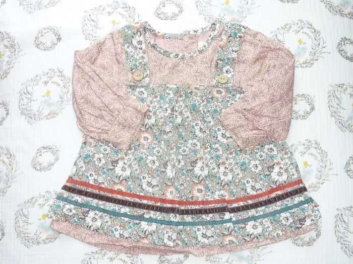 Etat excellent pour cette tunique originale, imprimé fleuri, déclinaison de rose et de menthe