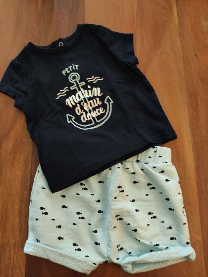 Ensemble short et t-shirt de la marque Kiabi en excellent état, jamais porté, seulement lavé. Taille 6 mois. N'hésitez pas si vous souhaitez d'autre(s) photo(s) ou infos, mauvaise luminosité désolée.