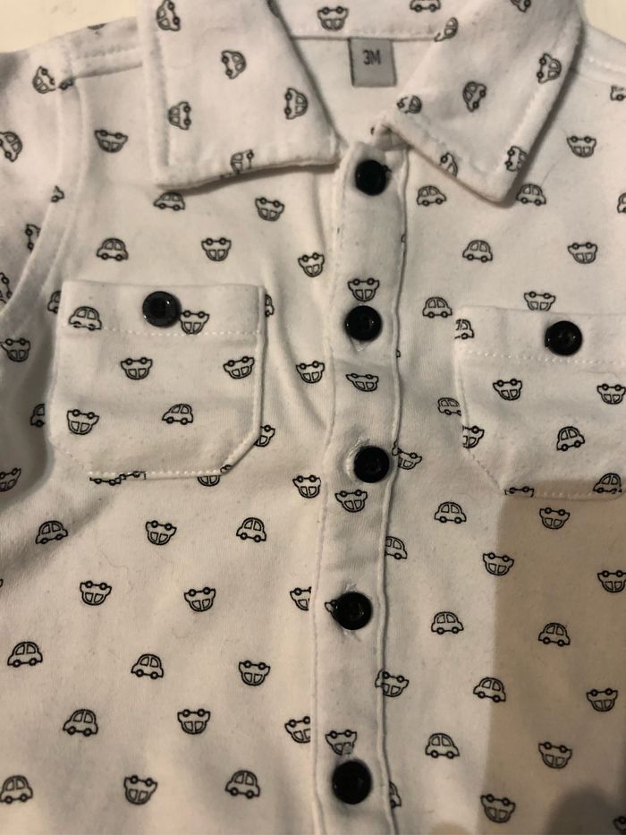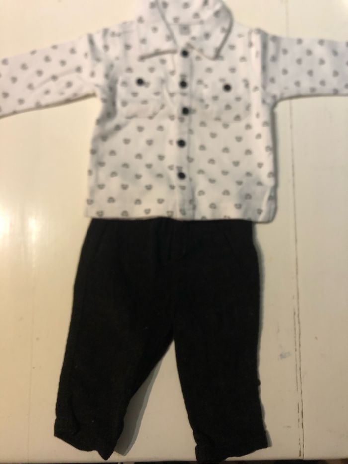 Ensemble 3 mois Pas de marque Pantalon noir et haut à bouton petites voitures