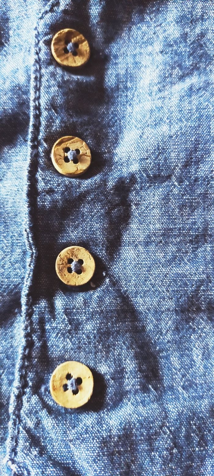 Gilet en denim, les boutons sont en bois. Très bon état.