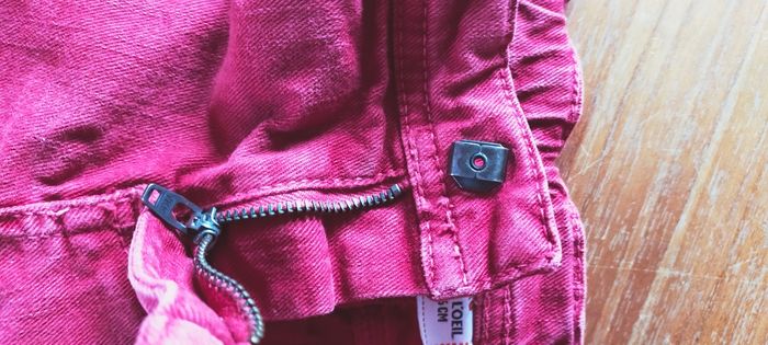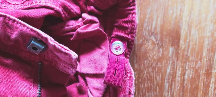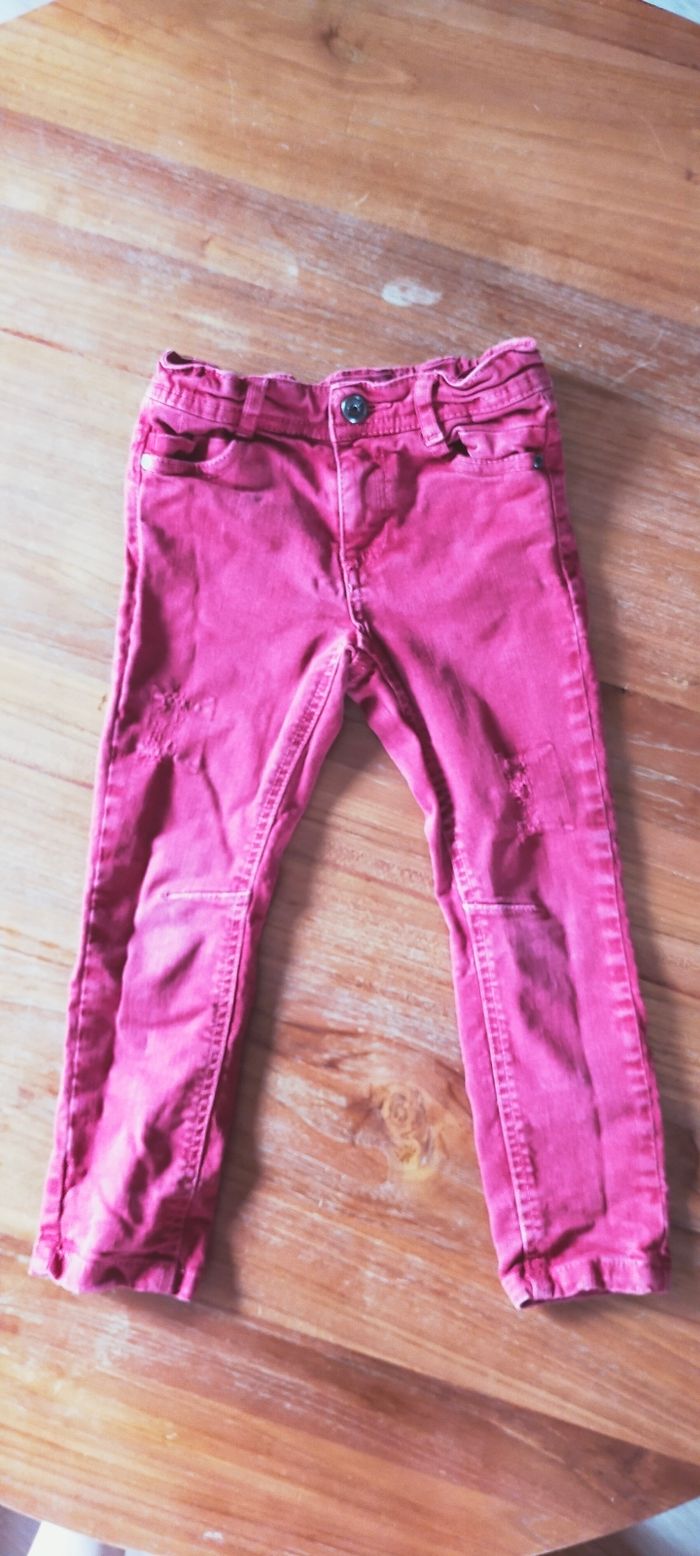 Jean rouge en très bon état. Fermeture crochet , taille ajustable.