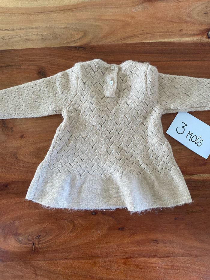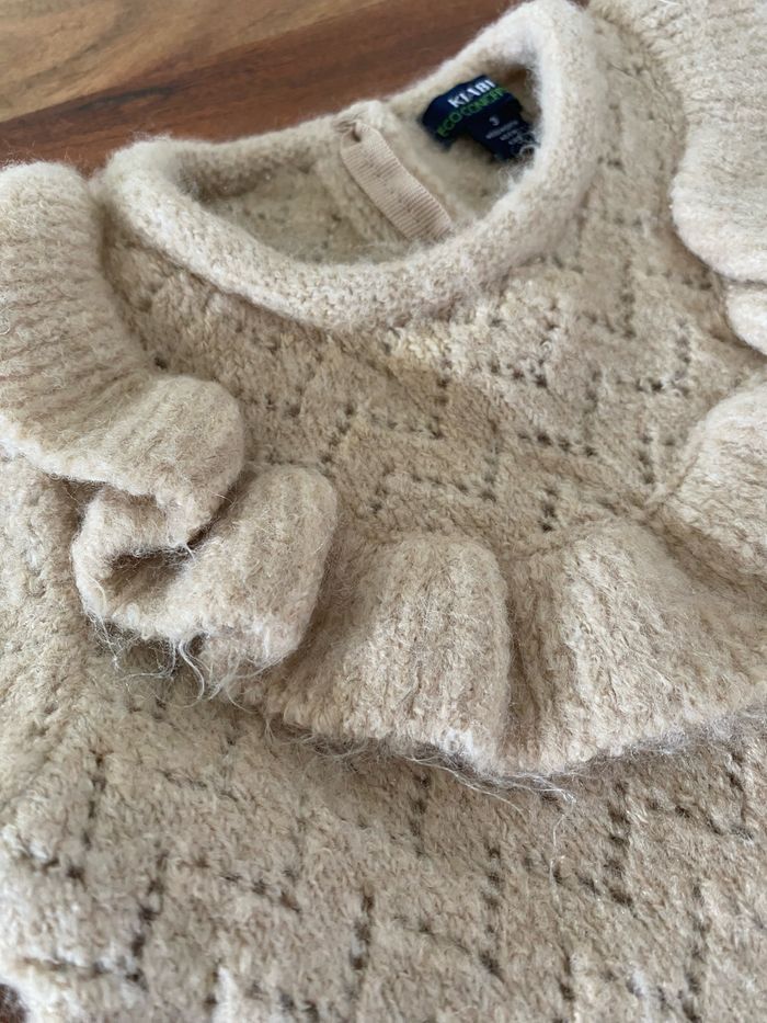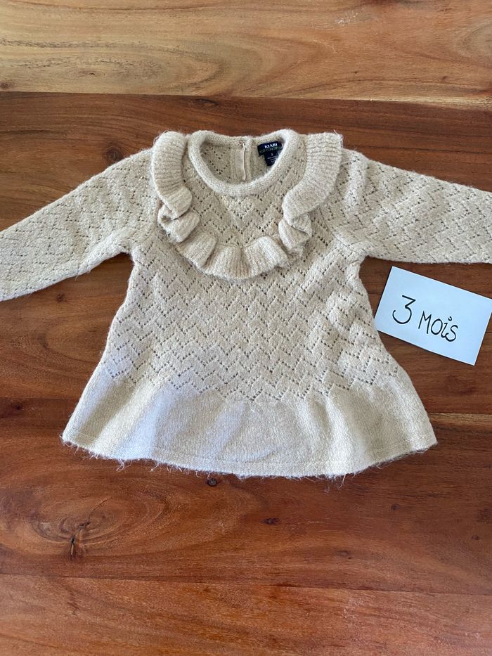 Robe épaisse beige Effet macramé et col froufrou Taille 3M Kiabi