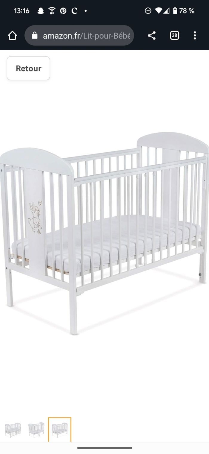 Lit bébé en bois de bonne qualité hauteur du lit réglable et très pratique.