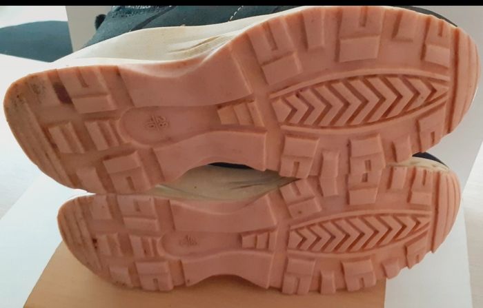 Fermeture à scratch. Portées, la couleur intérieure est un peu grisée, la peau a quelques marques, vu à l'image.