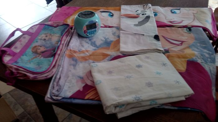 Vd lots la reine des neiges parure complète lit une place un réveil un sac et un plaid