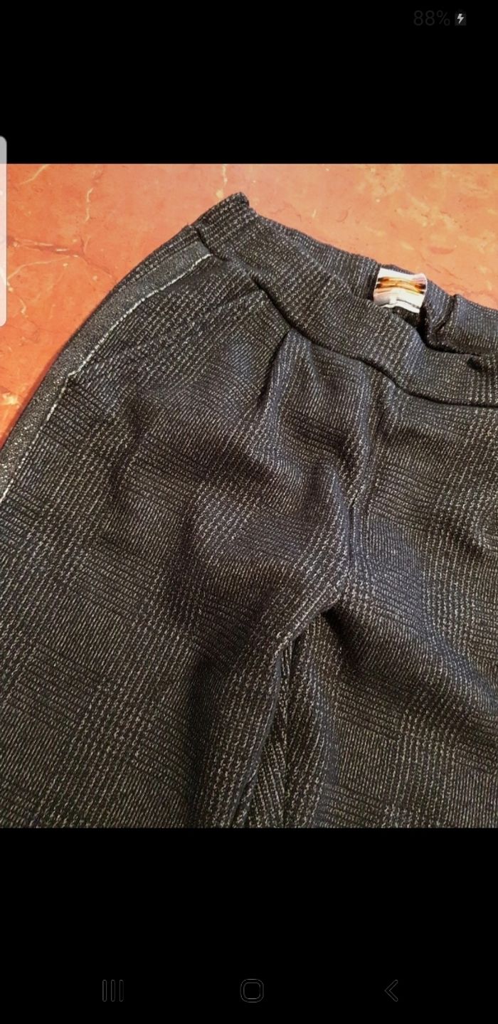 Joli pantalon à carreaux avec bandes pailletées sur le côté. Deux poches à l avant et 2 fausses à l arrière. Réglable à la taille