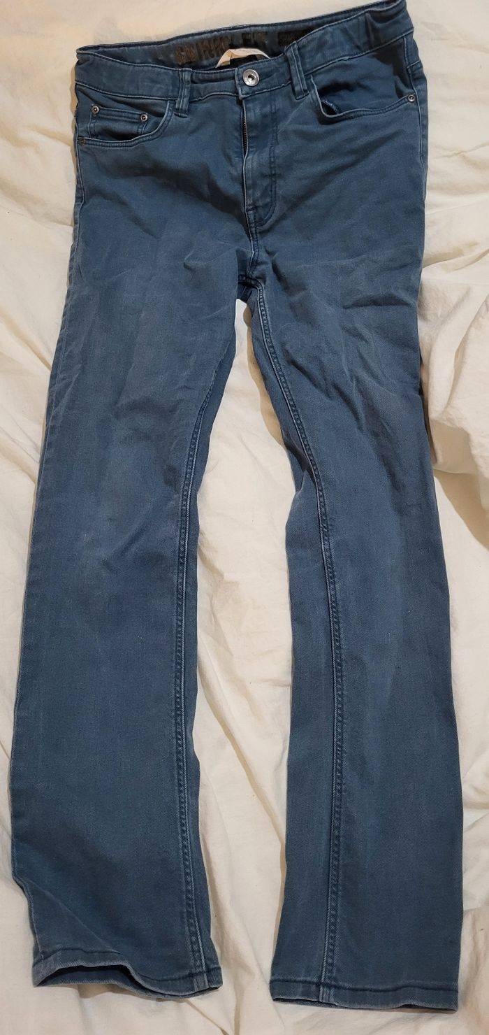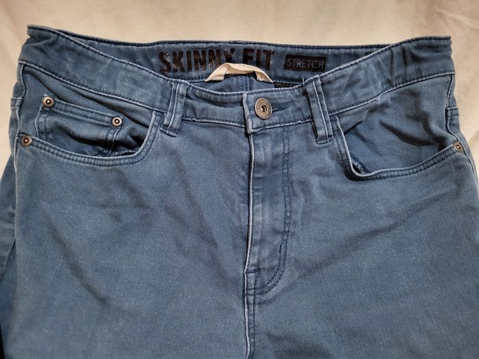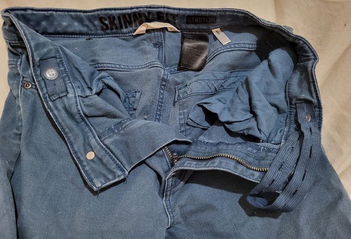 Pantalon bleu H&M Skinny Fit Stretch 13-14 ans Les élastiques pour resserrer la taille sont cassés, car ils sont restés trop longtemps au soleil entre autre...