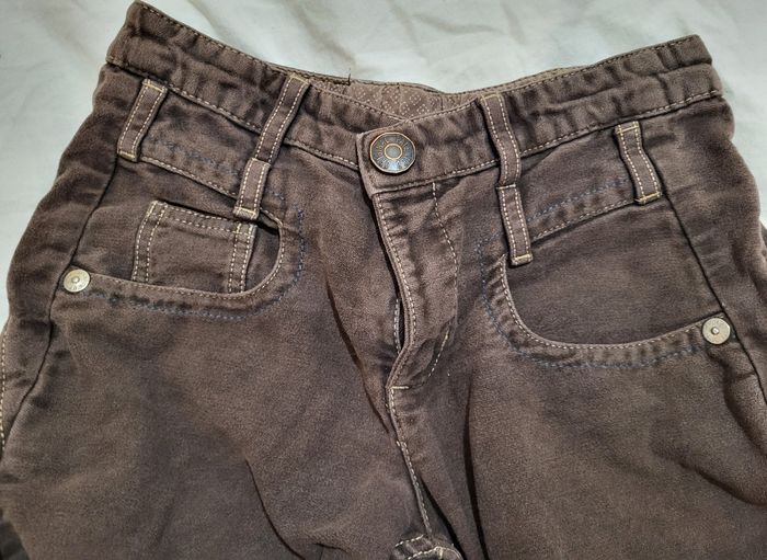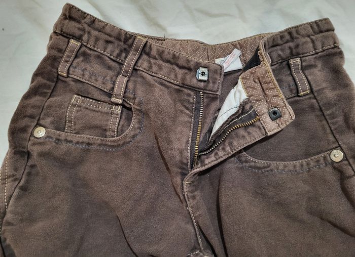 Pantalon marron Ikks 12 ans 100% coton Il manque un bouton pour les élastiques à l'intérieur pour resserrer le pantalon. Étiquette derrière un peu abîmé