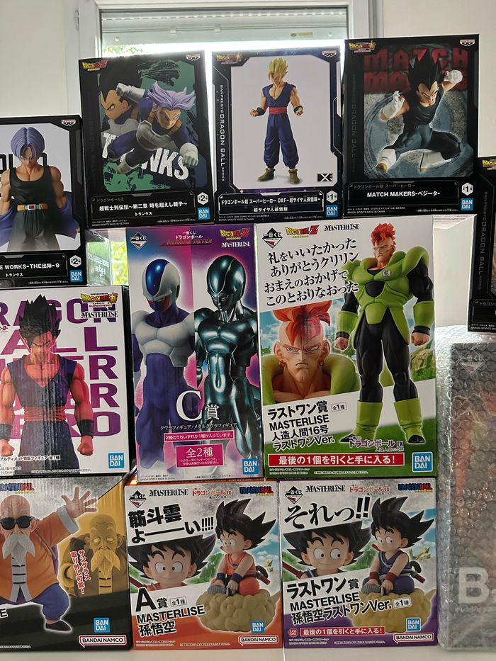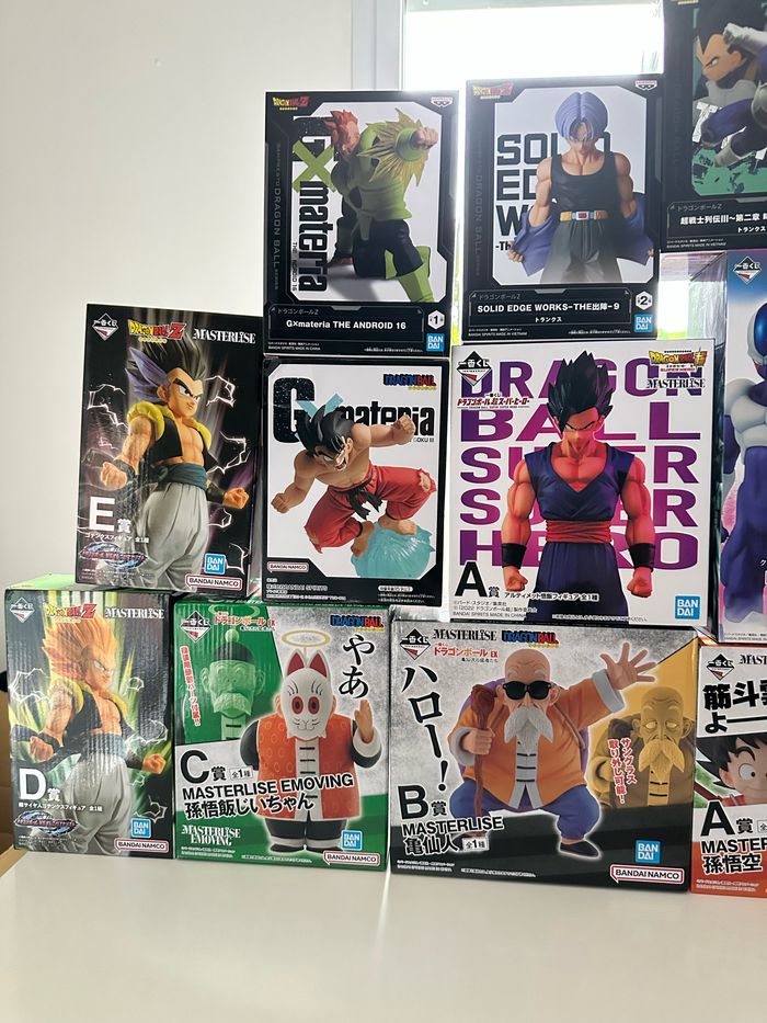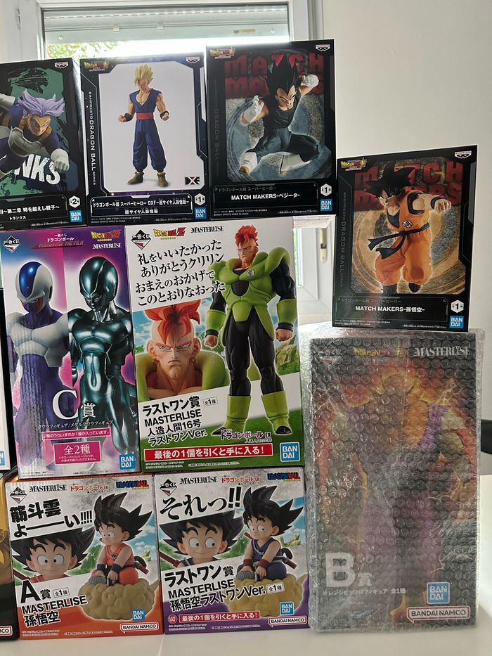 Bonjour je mets en vente ces figurines dragon ball ichiban kuji et quelques figurines prizes toutes neuves scellées ! Envoie possible! Toutes les figurines prizes 25 euros gotenks 45 gotenks ssj 45 Ultimate gohan 48 Last one c-16 118 Cooler 85 (version normal)( boîte ouverte pour le modèle mais blister non ouvert) Orange piccolo 98 Last one goku nuage 155 Goku nuage 115 Papy gohan 90 Muten roshi 90 Clé: figure dbz super ssj super saiyan gt funko pop animation grandista masterlise one piece pièce wano luffy luffytaro zoro sabre samurai katana kimono chapeau de paille animé dragon ball z super naruto shippuden uzumaki one punch man goku vegeta gohan mirai saitama geek figurine statuette portrait of pirates Japon megahouse bandai namco funko pop ichiban kuji