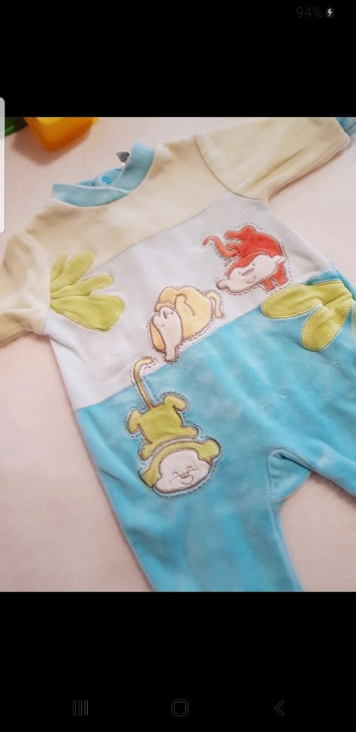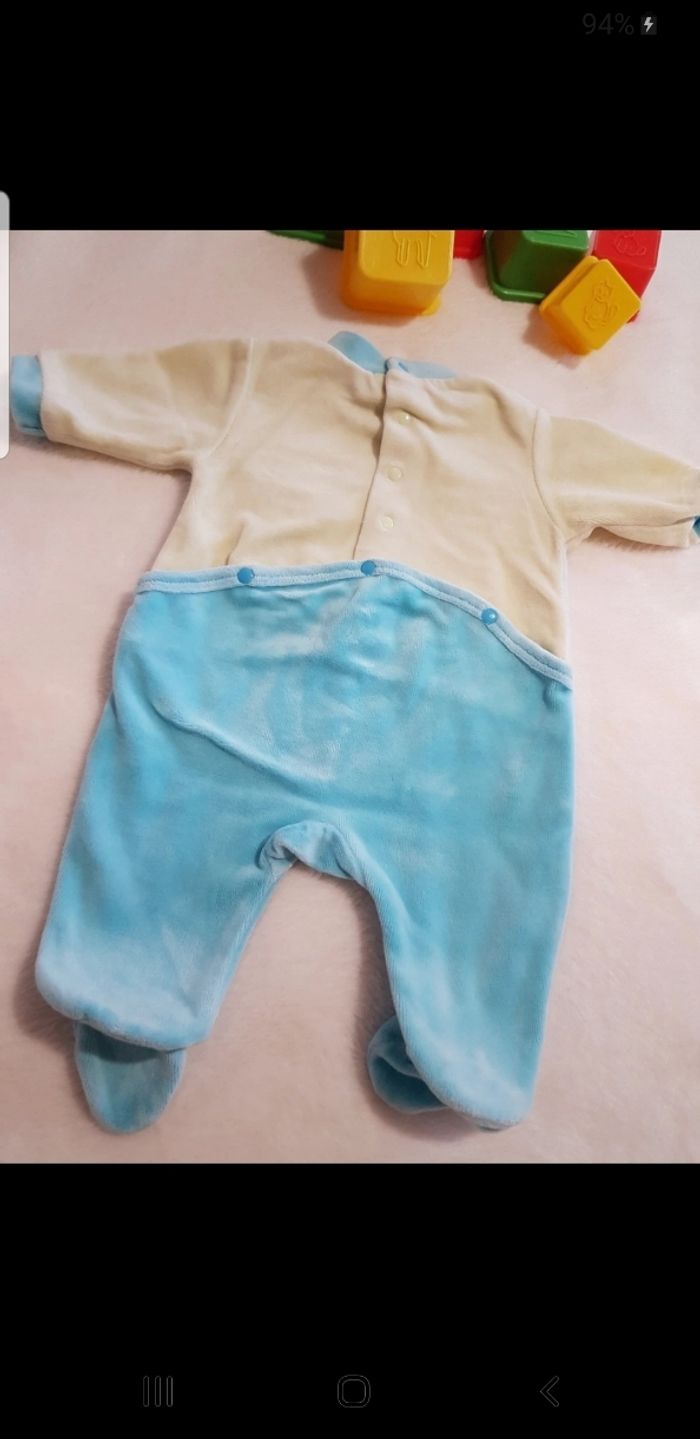 Pyjama coloré en velours avec pieds. Fermeture par pressions à l arrière. En parfait état