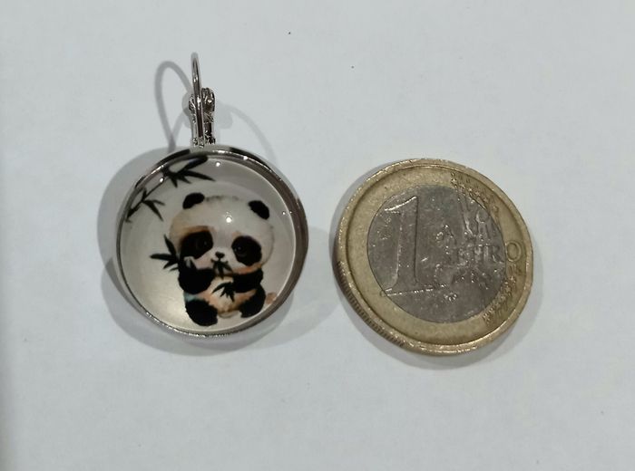 Fermoir dormeuse en alliage coloris argenté. Motif petit panda. Hauteur : 3 cms. Boucles neuves sous blister. N'hésitez pas à regarder mes autres ventes. Envoi rapide et soigné.