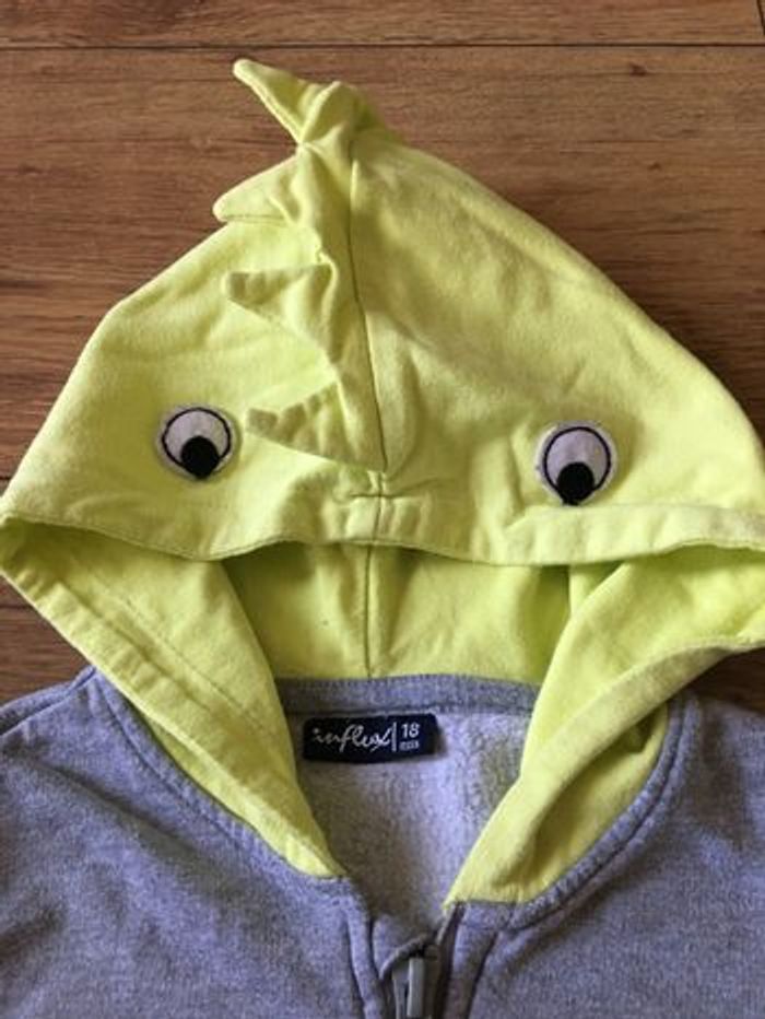 Sweat manches longues à capuche (avec œils et crête petit poussin),zippé , de marque Influx , taille 18 mois. En très bon état. Maison non fumeurs et sans animaux. Envoi rapide et soigné.