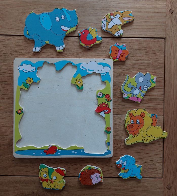 Puzzle en bois 9 pièces Les animaux de la forêt Très bon état excepté quelques usures