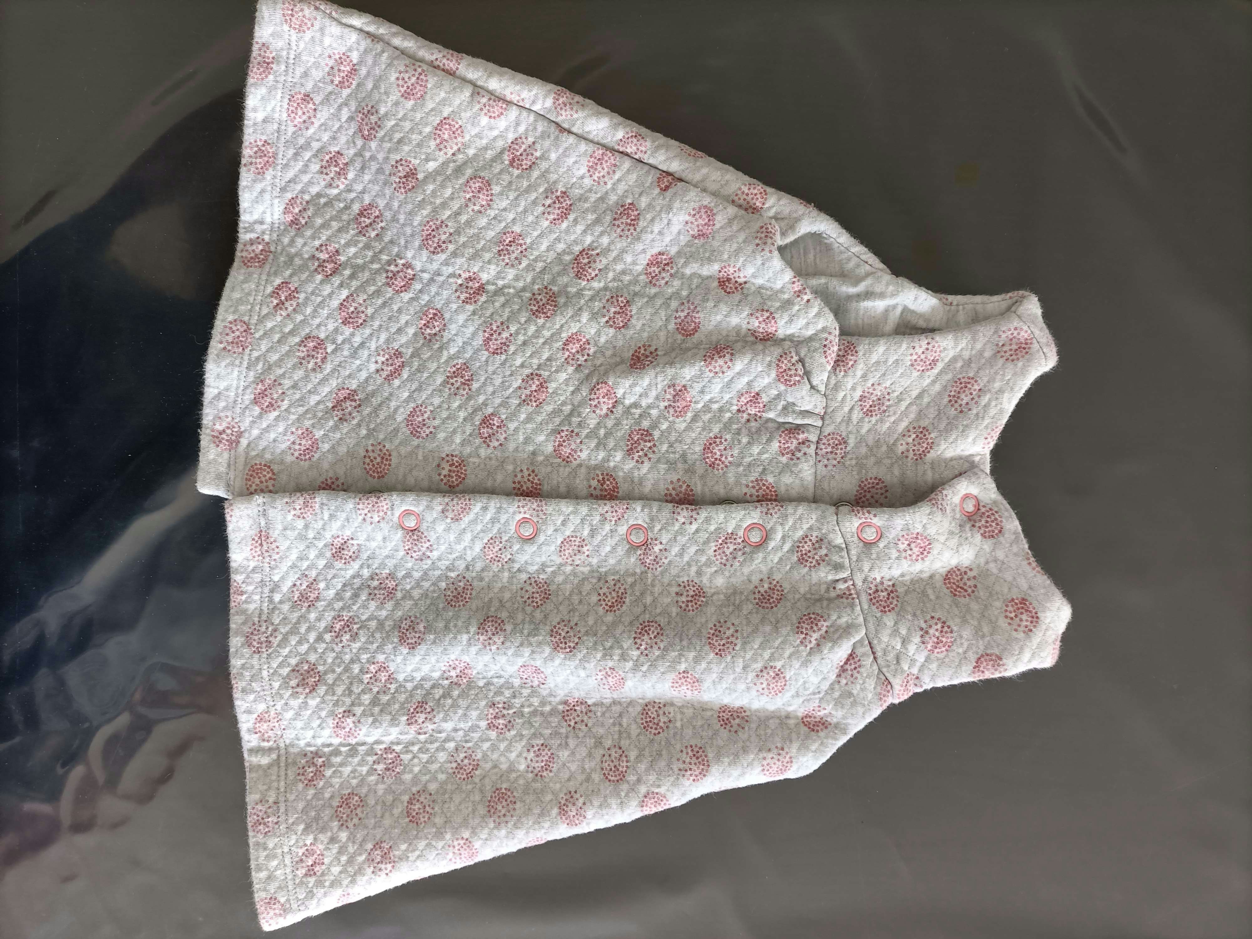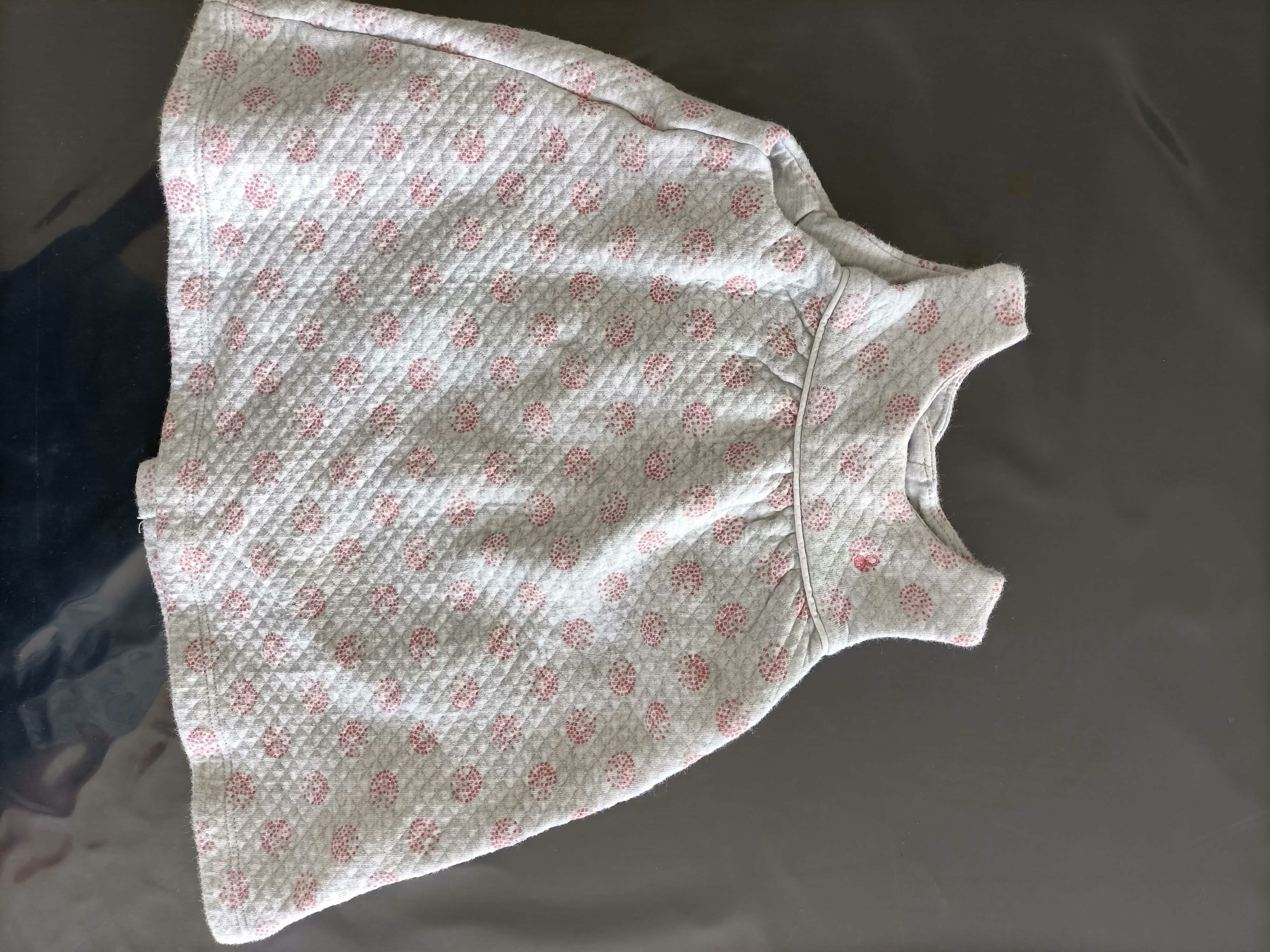 Excellent état, la robe est épaisse, idéal pour l'hiver. Elle est grise avec détails rose, assortie au gilet rose