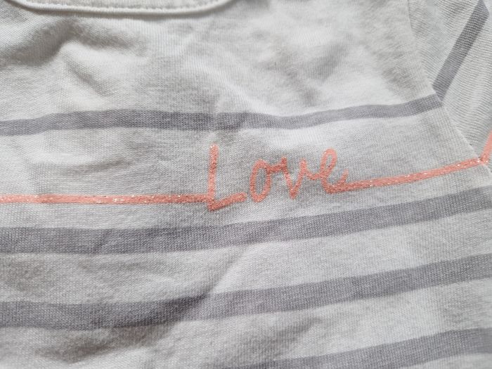 Tee-shirt manches longues avec pressions dans le dos. Inscription love. Taille 71 cm.t