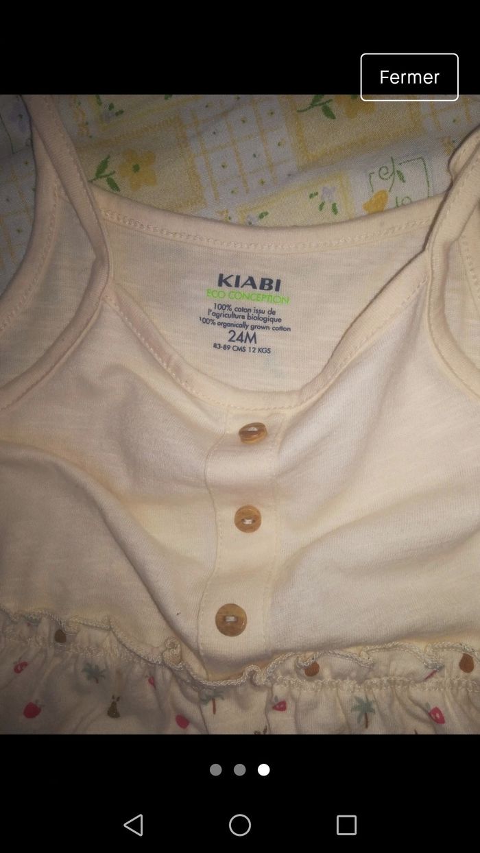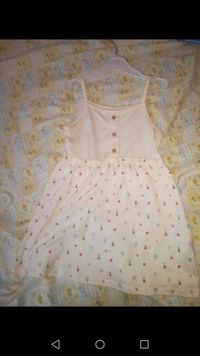 Robe d été kiabi neuve. Robe à bretelles de couleur crème avec un imprimé. Jamais portée étant donné le mauvais temps de cet été. Taille 2 ans.
