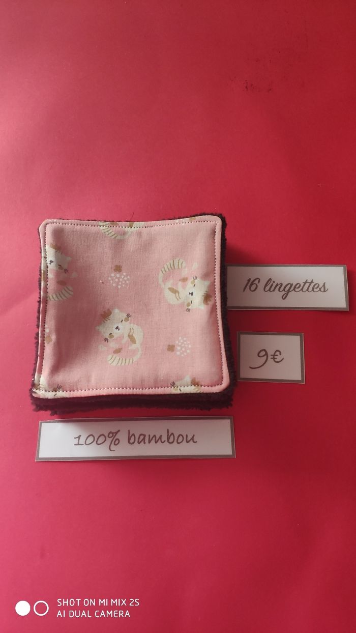 Tissu eko-tex français et éponge bambou noir, 10 X10 cm, pour bébé et démaquillante pour les mamans 😄