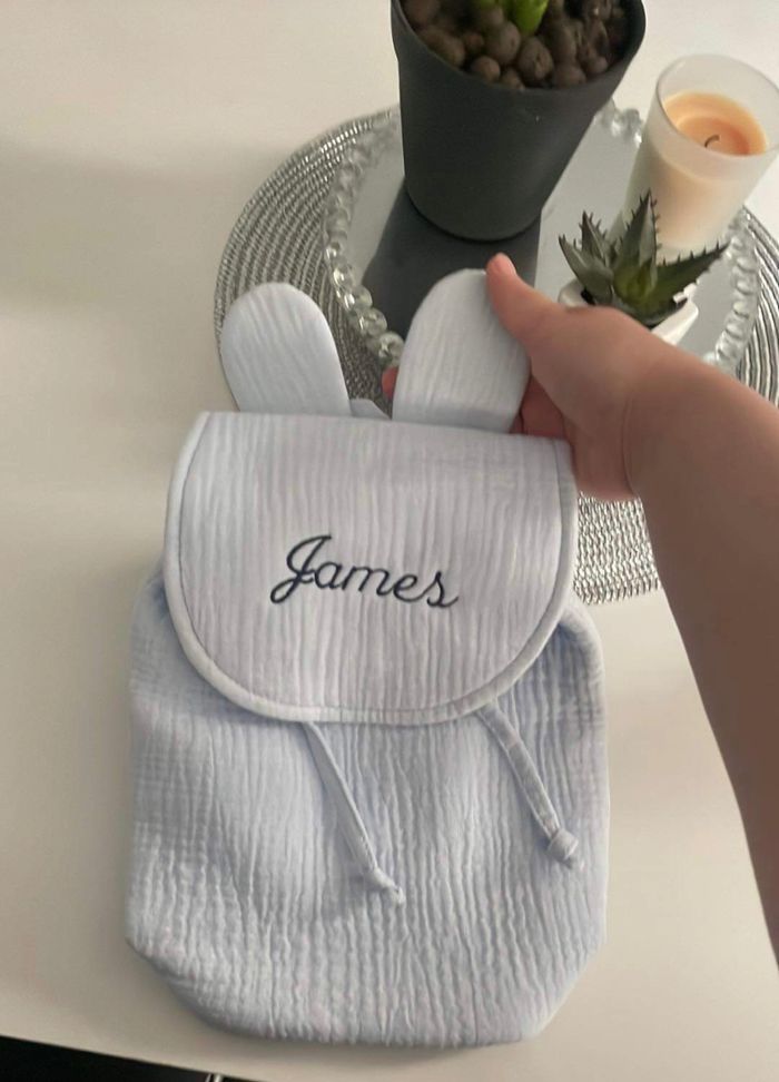 Sac à dos de la marque verbaudet, Le sac est brodée avec le prénom James Je l’es commander en double par erreur et verbaudet ne reprends pas les articles personnalisés