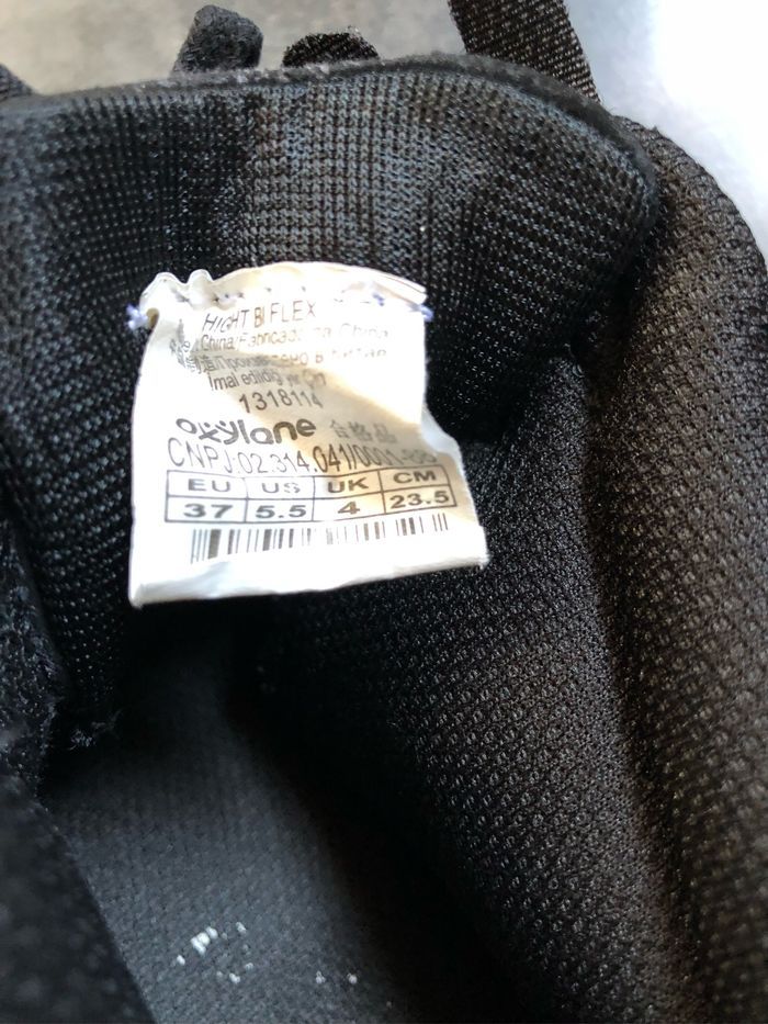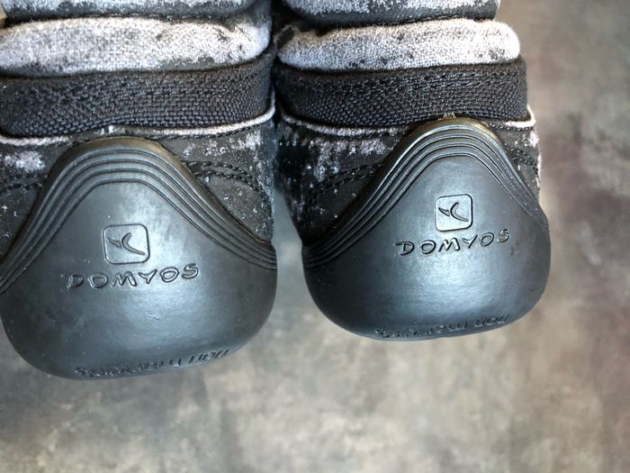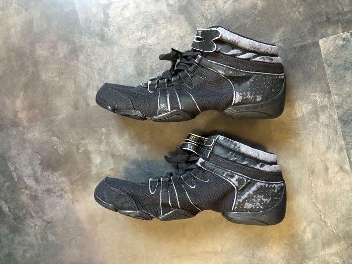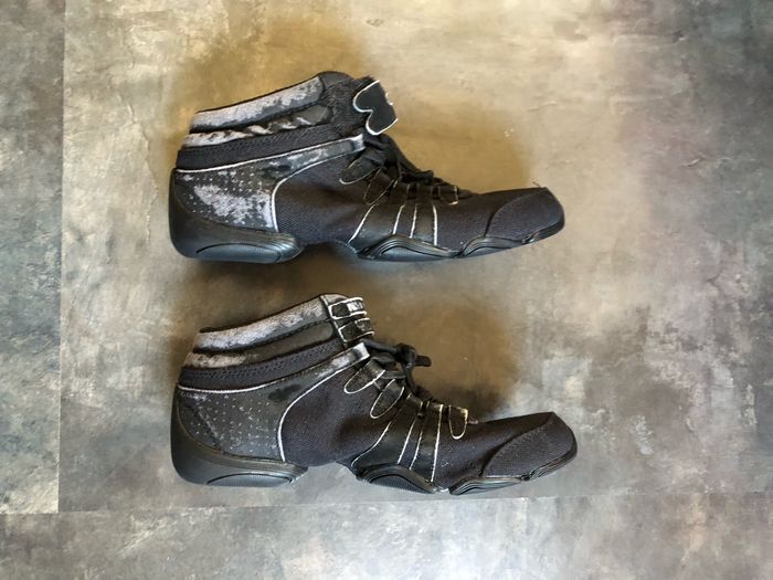 Je vends Chaussures baskets de danse Noir montantes devenues trop petites Pointure 37 Domyos Très bon état de fonction, défaut : les aspects daim sont partis, ce que vous voyez en gris