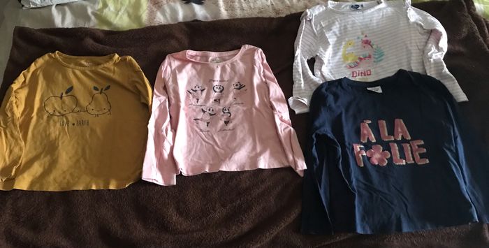 Hauts manches longues fille 3ans Kiabi, mots d’enfants , tao