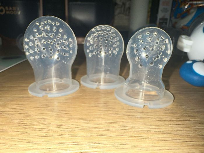 Vends grignoteur en silicone sans BPA avec 3 tailles S 4-6 mois m 6-12 mois L + 12 mois Ensemble neuf 8€