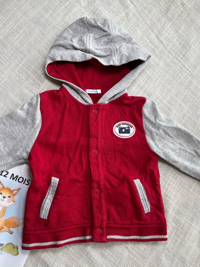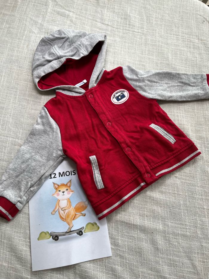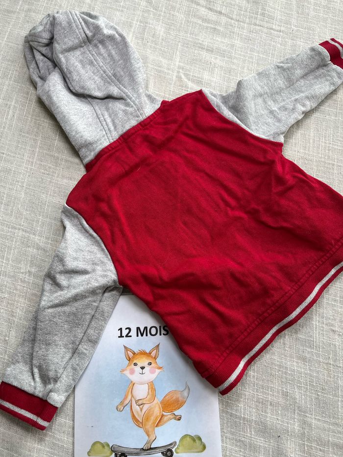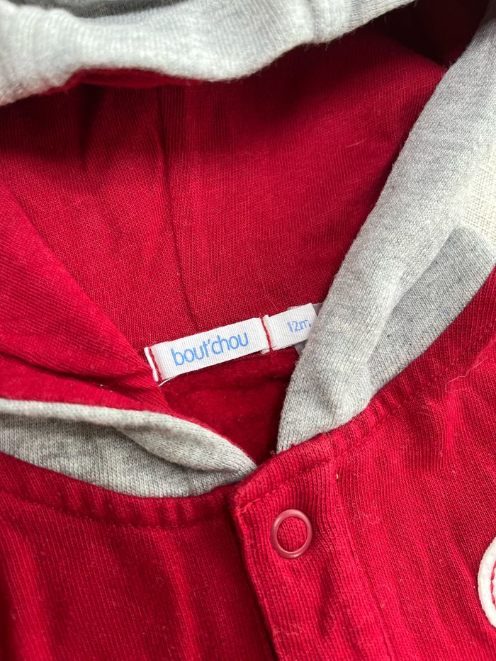 Jolie veste de survêtement / Gilet de la marque Boutchou Couleur rouge et gris Taille 12 mois Groupez vos achats pour profiter des remises activées sur les lots et réduire vos frais de port