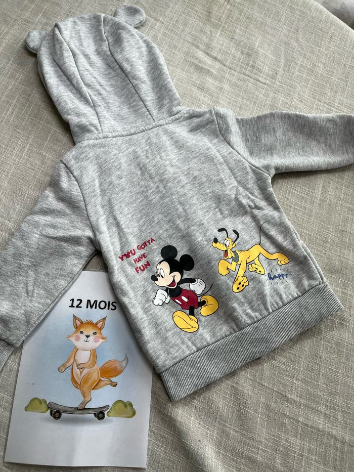 Magnifique gilet zippé Disney avec Donald, Mickey et son fidèle Pluto Jolies oreilles sur la capuche Taille 12-18 mois Convient aux filles comme aux garçons (mixte) Groupez vos achats pour profiter des remises activées sur les lots et réduire vos frais de port