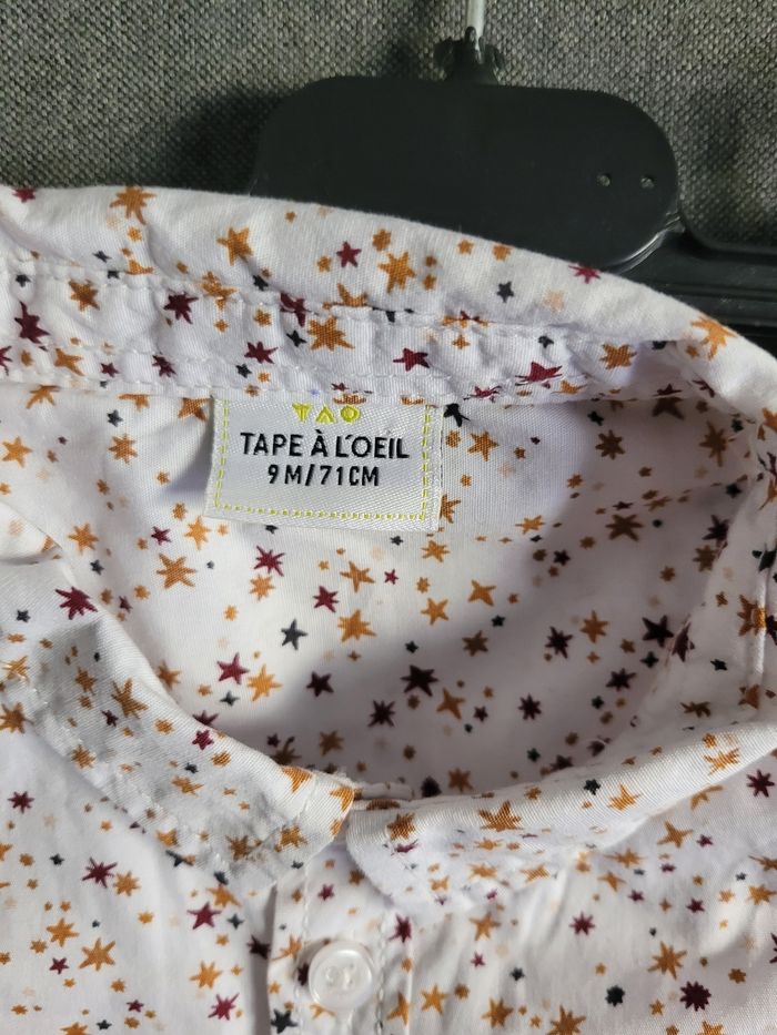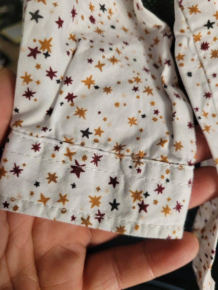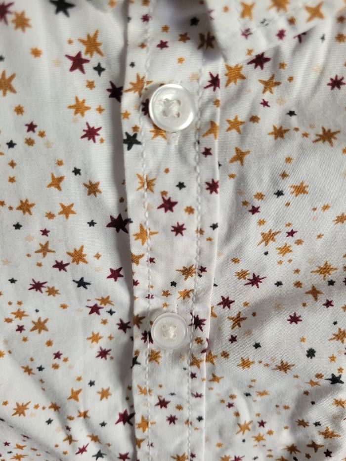 Petit chemise Manche longue Tous saison Taille 9 moi Couleur blanc étoiles bordeaux et orange 100% coton