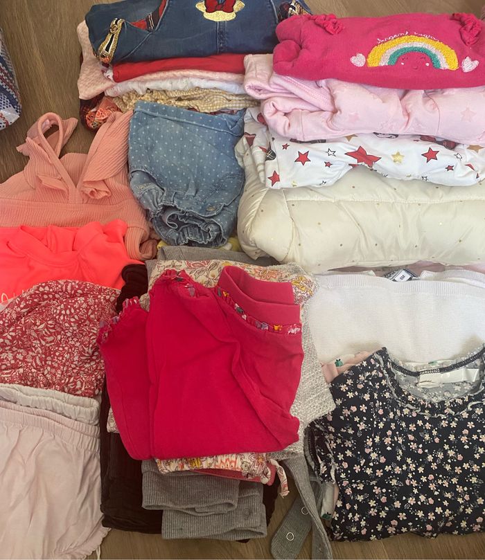 En très bon état : aucune tache ni usure vêtements , sergent major , original marines , minnie , Zara , tartine et Nicolas , kiabi Maillots de bain - chapeaux - t shirt - sweat - doudoune -robes -shorts - leggings -pantalons - culottes-gilets