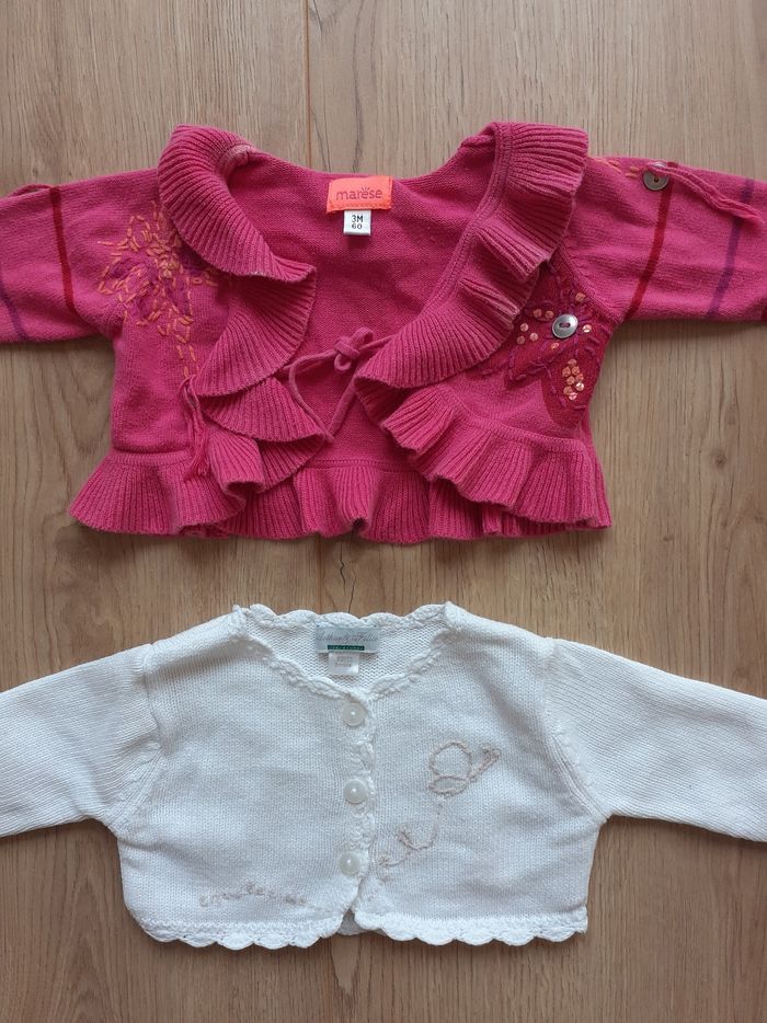 Lot de 2 gilets de marque Marèse et Vertbaudet ; Taille 3 mois ; En très bon état