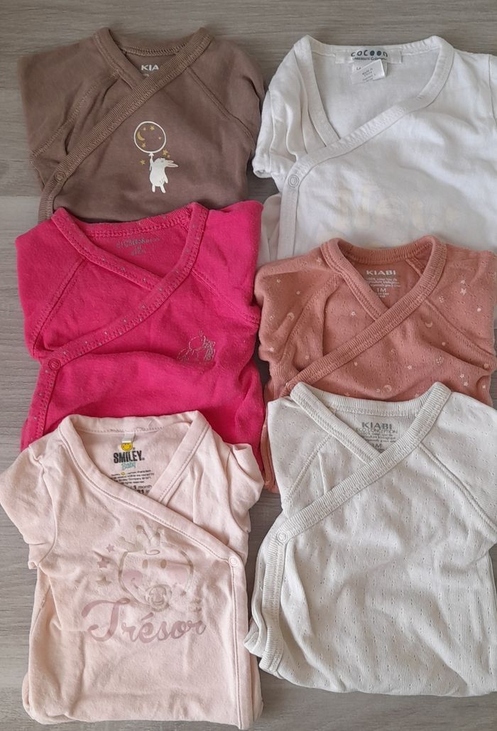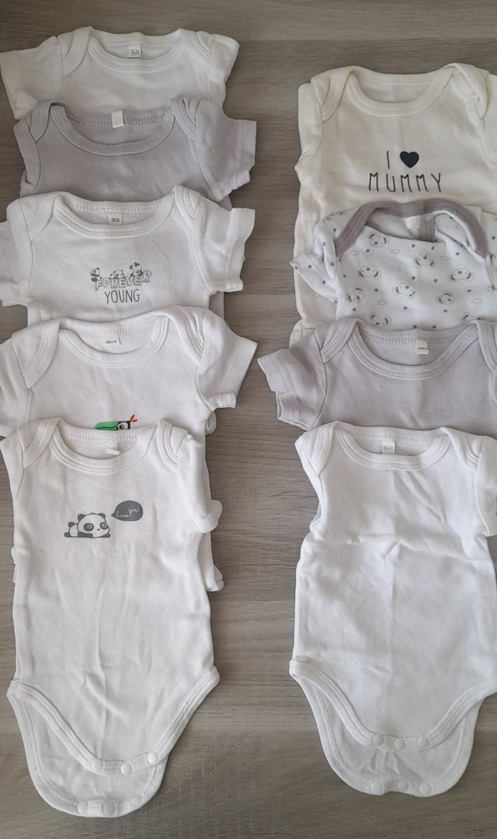 Lot body 9 manche courte dont 1 un peu tâcher au niveau du col 6 body manche longue Bonne état 1 mois Marque diverse