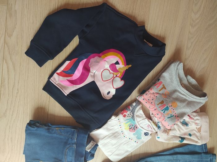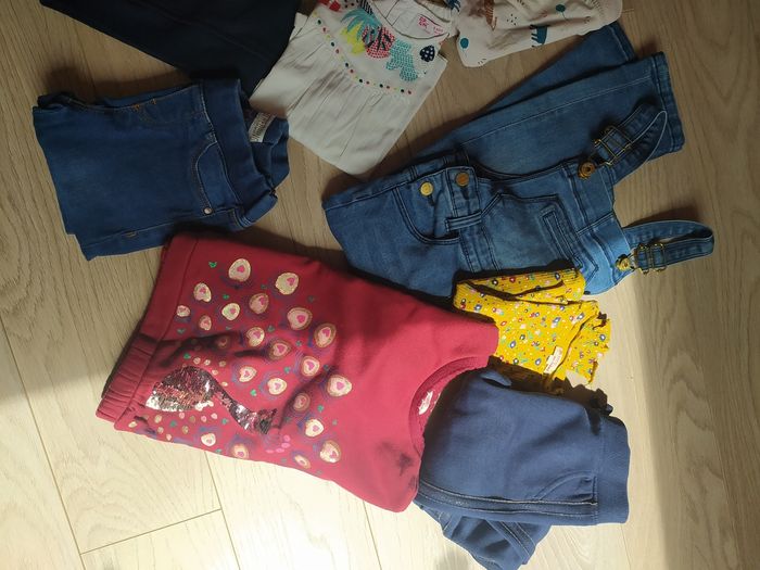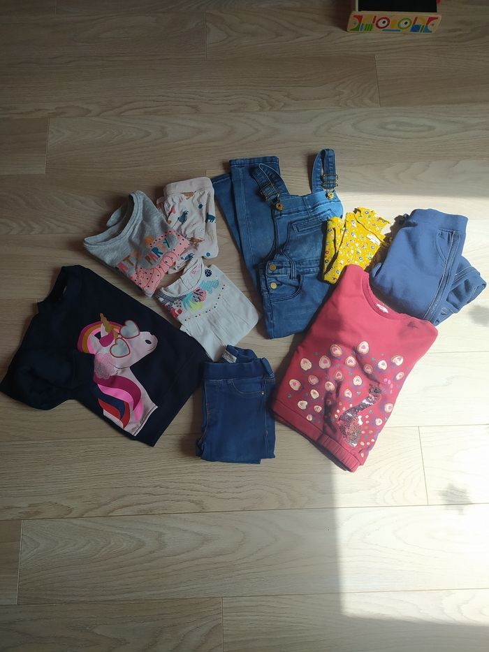 Tout en excellent état 2 sweats 1 salopette 1 jeans 1 jogging 1 pyjama 1 blouse 1 haut manche longue fleuri