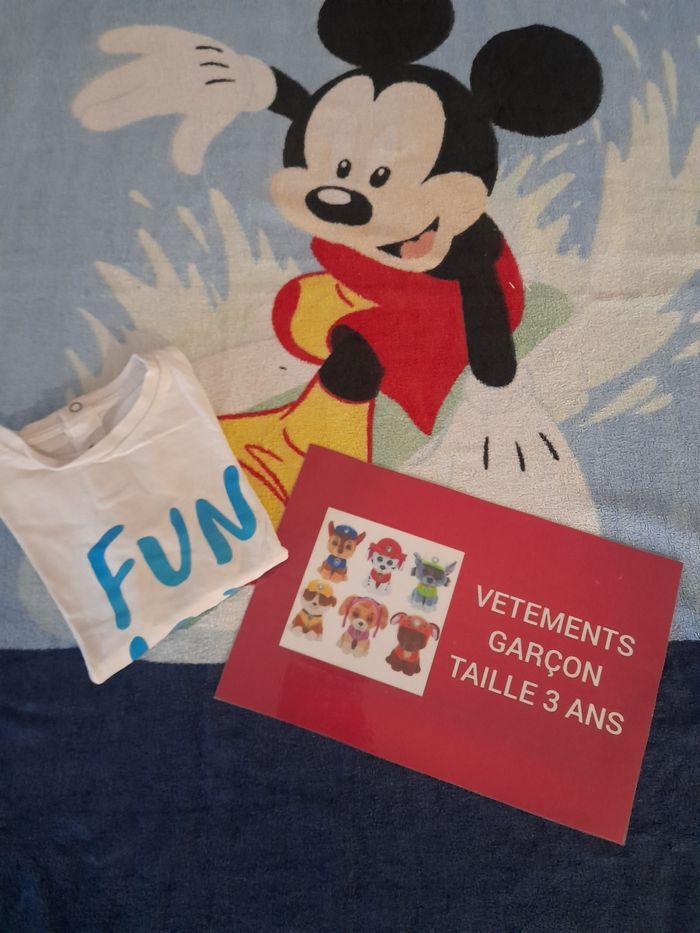 Bonjour-Bonsoir Je met en vente ce tee-shirt taille 3 ans en très bon état , de couleur blanc et de marque Gémo Possible de faire un lot Tout les vêtements de mon dressing seront laver et repasser avant chaque envoie
