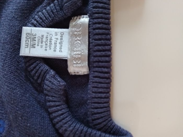 Pull bleu marine Obaibi 3 mois.