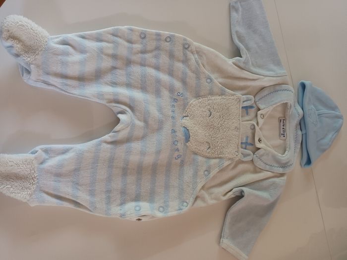Ensemble pyjama Sucre d'orge et bonnet Ying bear. Taille 3 mois.