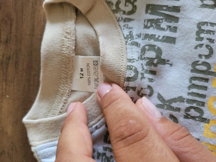 Petit T-shirt Manche court Beige marron Taille 12 mois Mi saison Voir toutes saisons Attaché en haut a gauche 100% coton