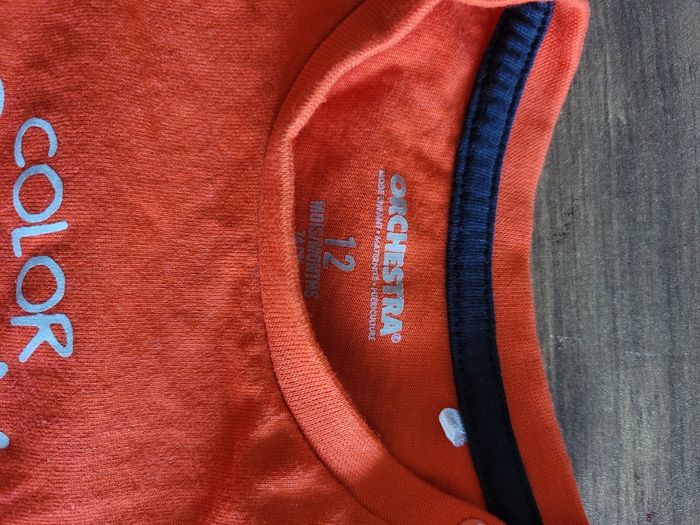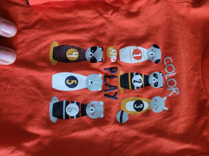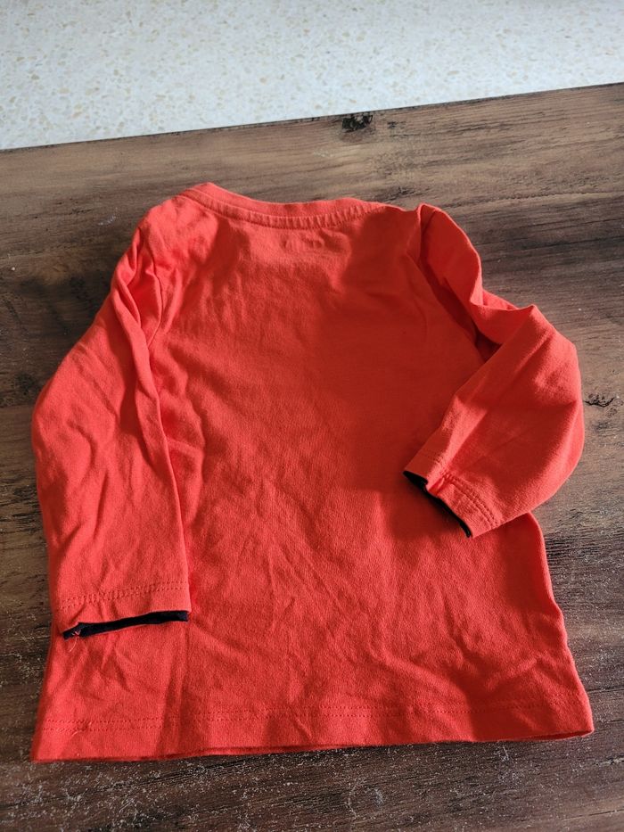 Petit T-shirt Manche longue Taille 12 mois Mi saison Rouge orange Animaux Attaché en haut a gauche 100% coton