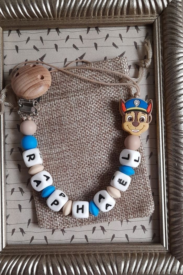 Attache tétine personnalisé avec le prénom de votre choix tout le matériel utilisé est aux normes européennes . Perles en silicone ou en bois ou un mélange selon les modèles . En respectant les normes de sécurité pour bébé ,n'hésitez pas à regarder dans mon dressing il y a plus de 150 modèles et aussi à m'envoyer un message pour plus d'informations. 🔴 une petite remarque pour les prénoms qui sont très long il y aura forcément moins de perles sur les cotés ou quelques changements sur le modèle c'est pour respecter les normes de sécurité pour bébé il y a une langueur à respecter merci pour votre compréhension. 🔴Aussi l'utilisation de l'attache doit être sous surveillance et toujours vérifier si l attache tétine est intacte et les nœuds sont toujours bien fermés pour la sécurité de nos boutchous. Je vous remercie pour la lecture de ces consignes..