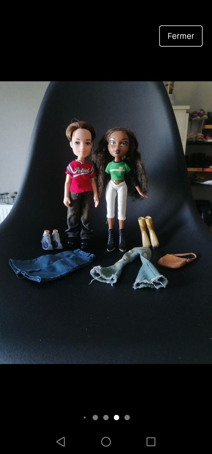 brazt de collection 2001-2003 En tres bon état il y a un pantalon et une paire de chaussure de rechange pour chaque poupée un sac à main pour la fille et un collier pour l'homme