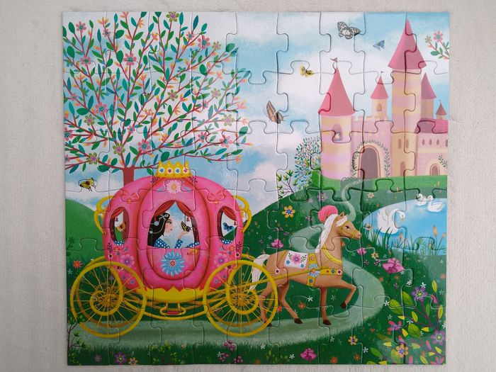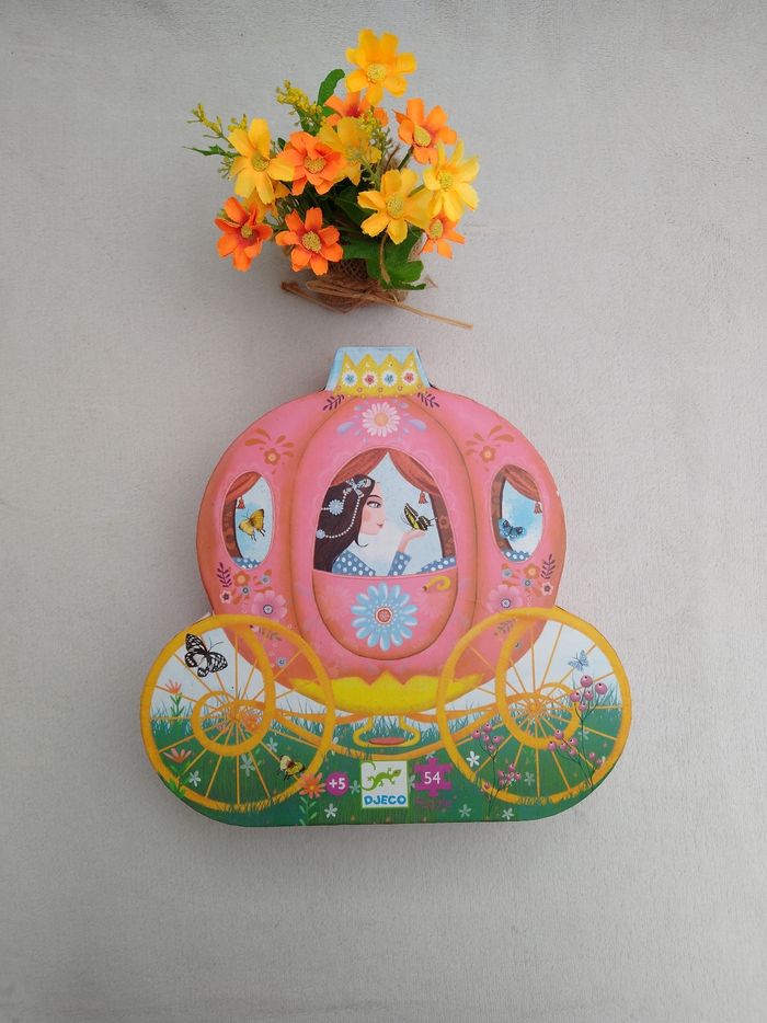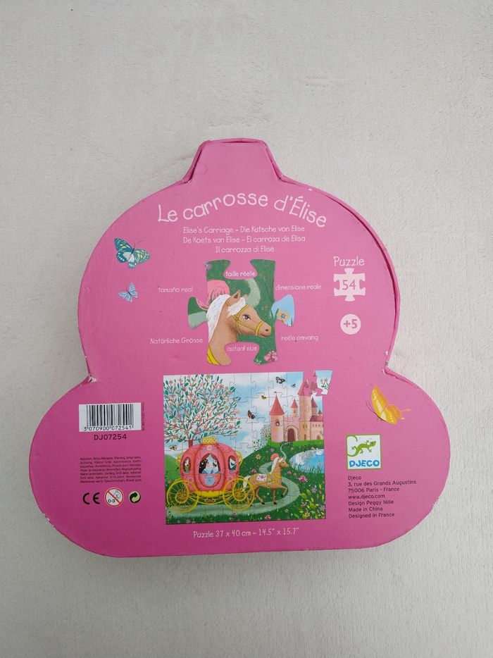 Puzzle Le carrosse d'Élise Marque Djeco À partir de 5 ans • 54 pièces • 37 cm x 40 cm • Quelques pièces et boîte très légèrement abîmées Boîte et puzzle en très bon état #evelyne_jeux